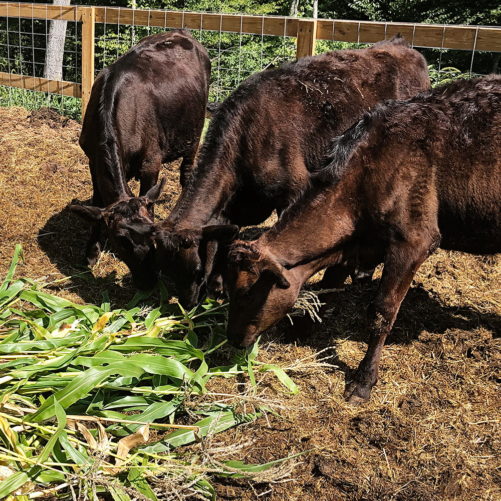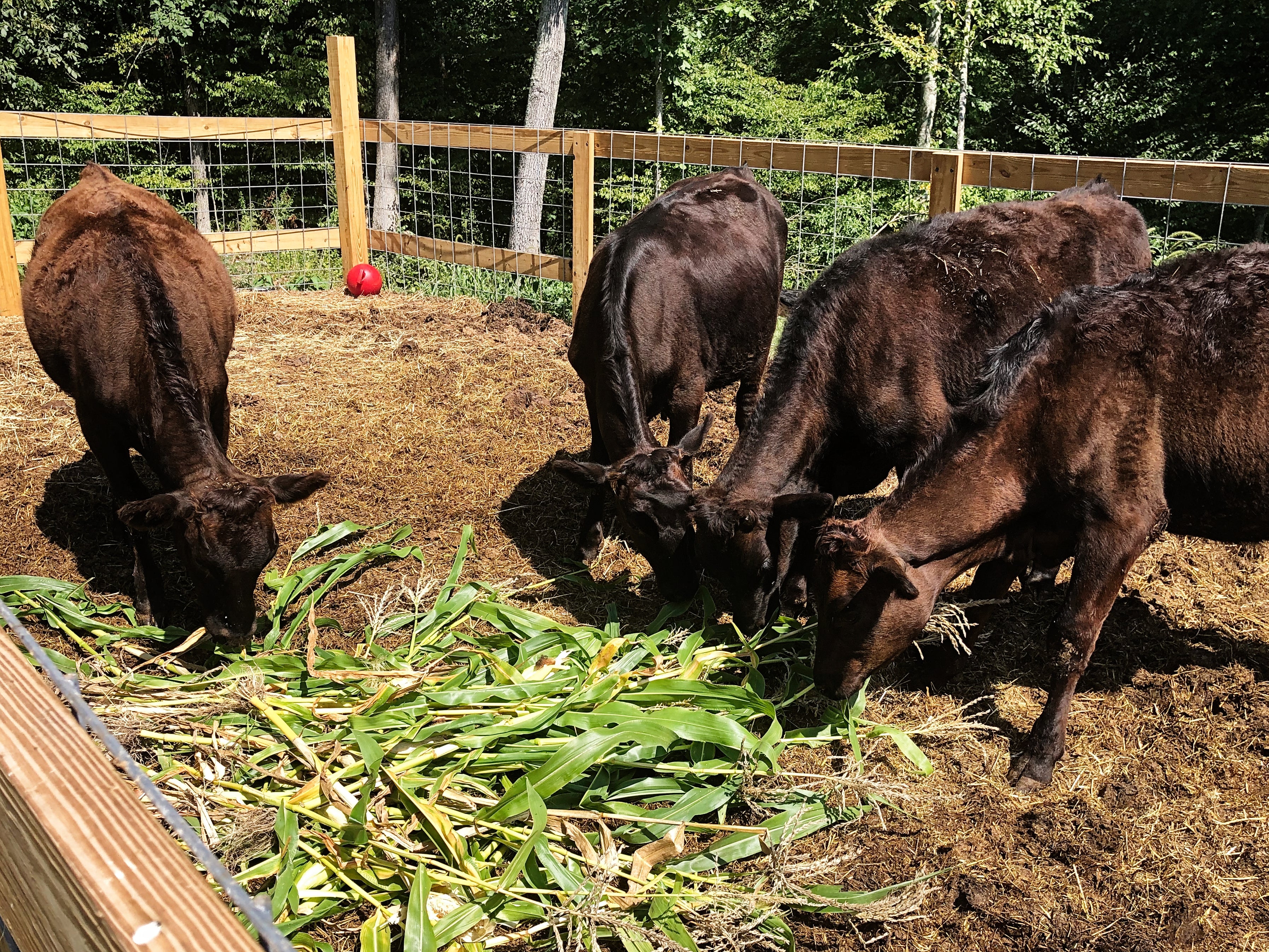 Something we are quite proud of is our support of other local farms. From our first layers we’ve focused on feeding quality feeds. When we started the Wagyu herd it was important that we continue with that. We were very fortunate to connect with a local grain farm who also mills and sells both standard and custom feed rations. We purchase their NonGMO chicken feeds and also utilize the same corn and soy for portions of our custom Wagyu rations. When you factor in the local sources of our hay, 98% of our feed is grown within 30 miles of the farm! An update, we are currently feeding a conventional corn silage as part of the Wagyu ration.
